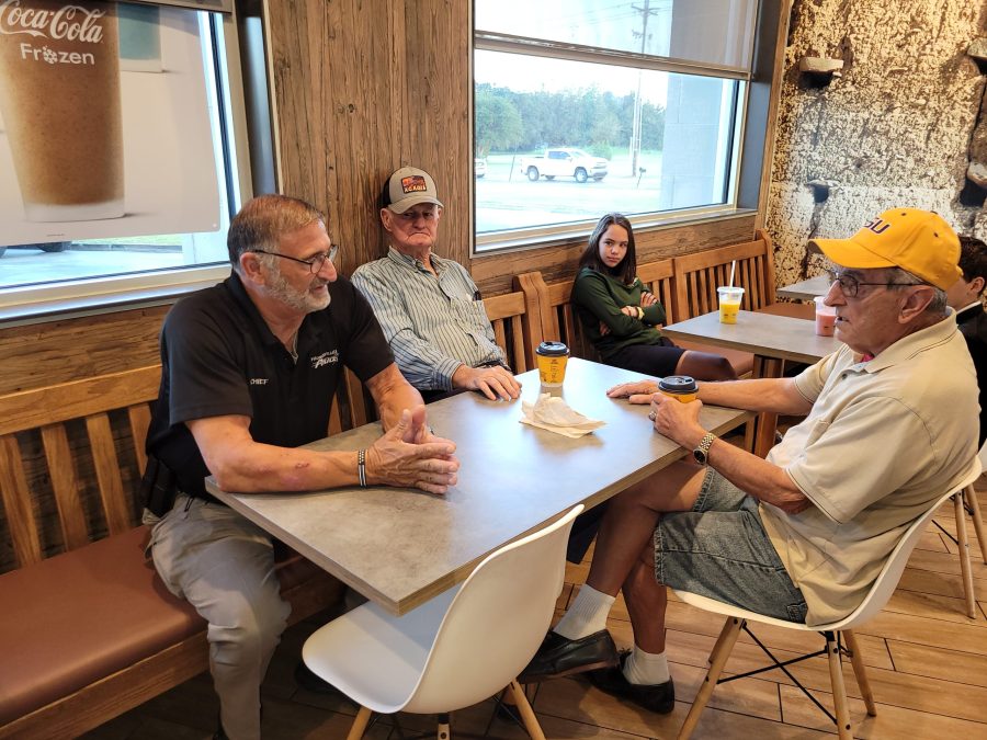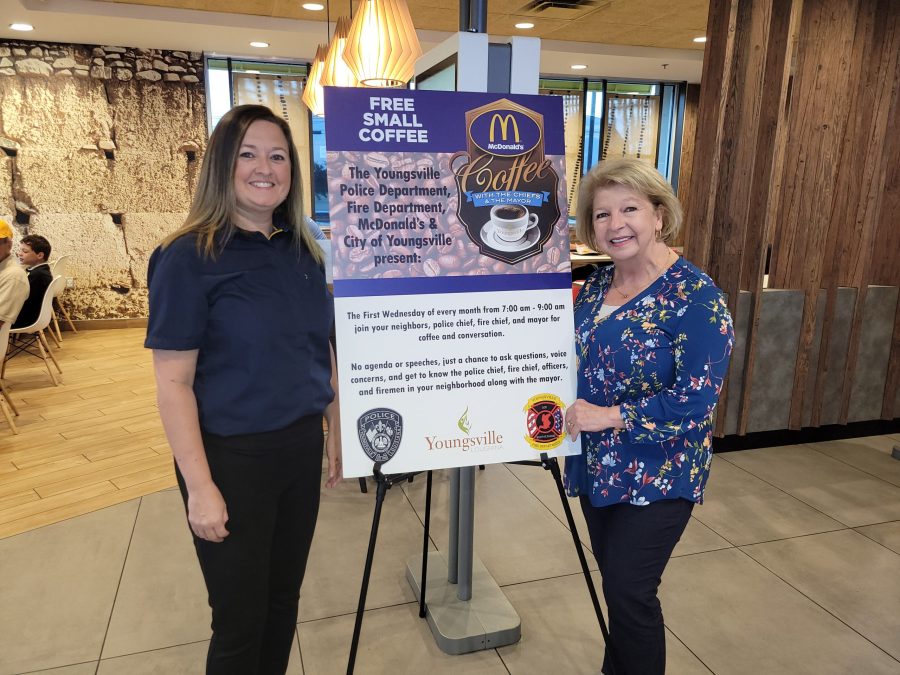 Youngsville Mayor Ken Ritter and Police Chief Ricky Boudreaux along with some of their staff was at McDonald’s in Youngsville. The purpose was to allow residents to meet and speak with city officials.
