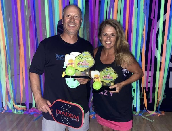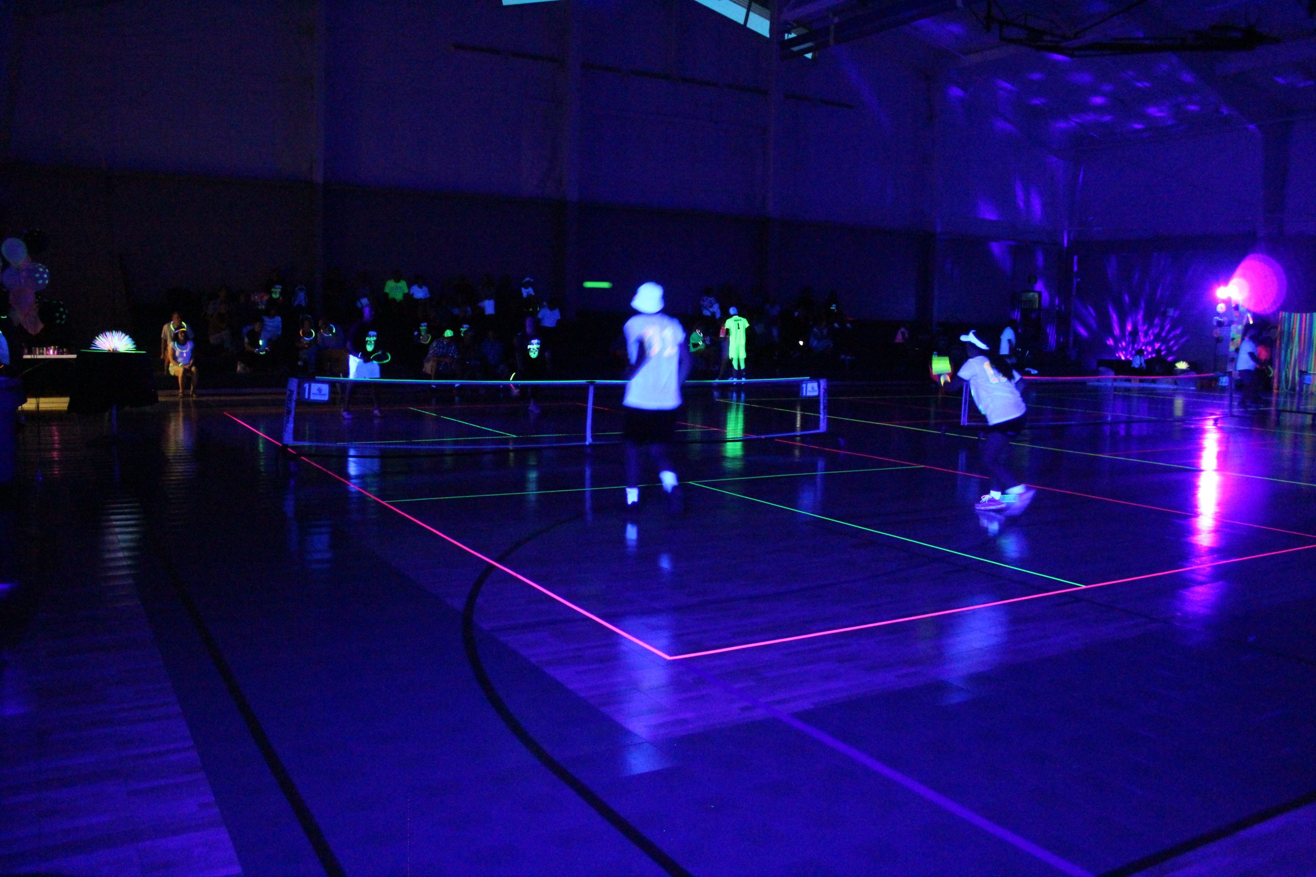 The Rotary Club of Youngsville held its first Pickle & Pints Mixed Doubles Glow Pickleball Tournament Saturday evening. The tournament was held at the Youngsville Sports Complex Recreation Center. Courts were taped off in glow-in-the-dark tape for the tournament.