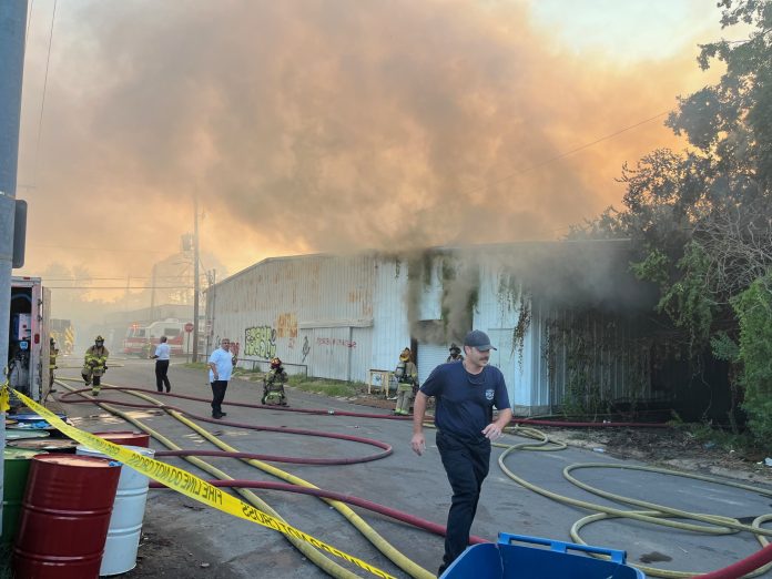 LAFAYETTE, LA – At 6:52 p.m. last night, Lafayette firefighters responded to a commercial fire in the 500 block of East Convent Street. When first responders arrived on the scene, heavy smoke was coming from the rear of the large warehouse. The commercial structure, once occupied by Lafayette Motors, sustained heavy fire damage to the exterior and moderate damage to the interior.