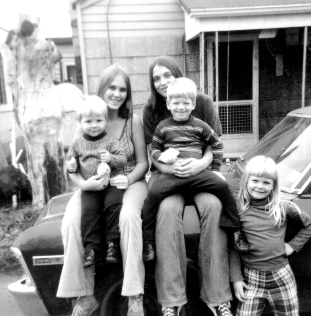 Karen (left), Pam (right) with her niece and nephews in 1972.