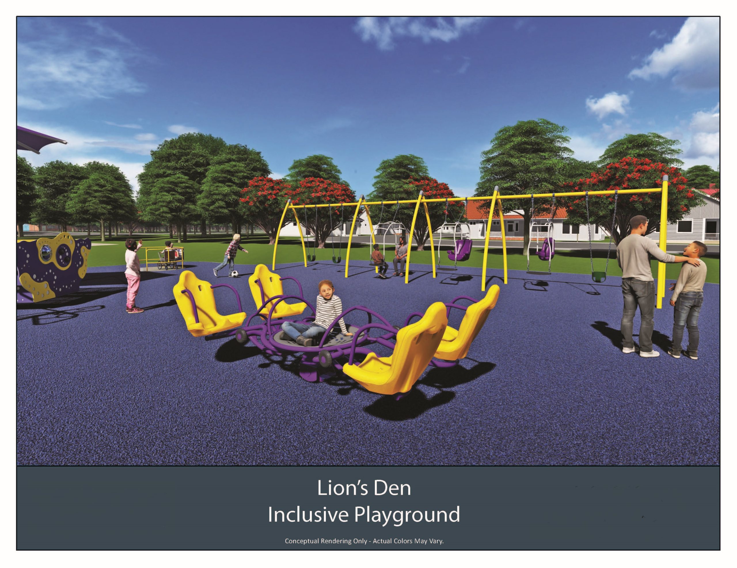 The Youngsville Lions Club (YLC) is working to create an inclusive playground in Youngsville. YLC hopes to have the playground named the “Youngsville Lions Den” Inclusive Playground/Park.
