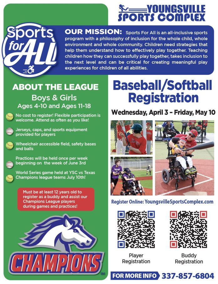 The Youngsville Sports Complex is happy to announce the creation of our all-inclusive Sports For All sports program.