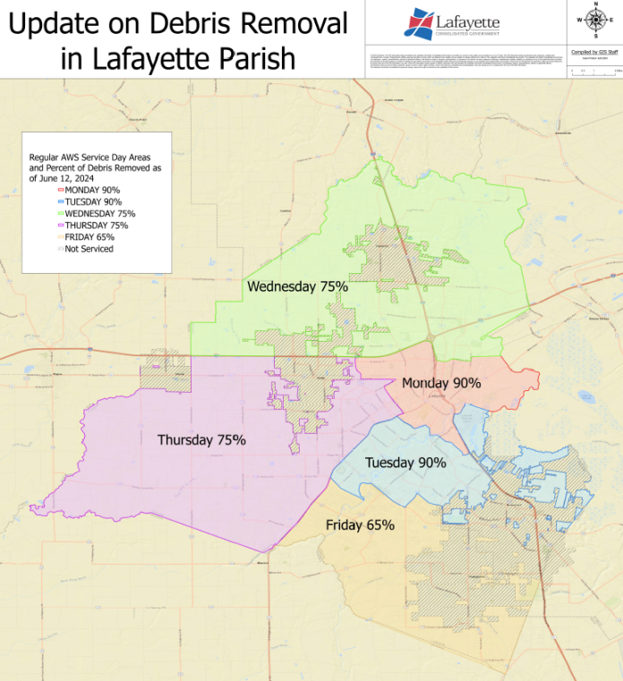 LAFAYETTE, LA (Jun. 14, 2024) – Lafayette Consolidated Government (LCG) continues to aggressively address the extensive debris left in the wake of the recent May storms and has completed over 80% of the 6,400+ requests received to-date from citizens.