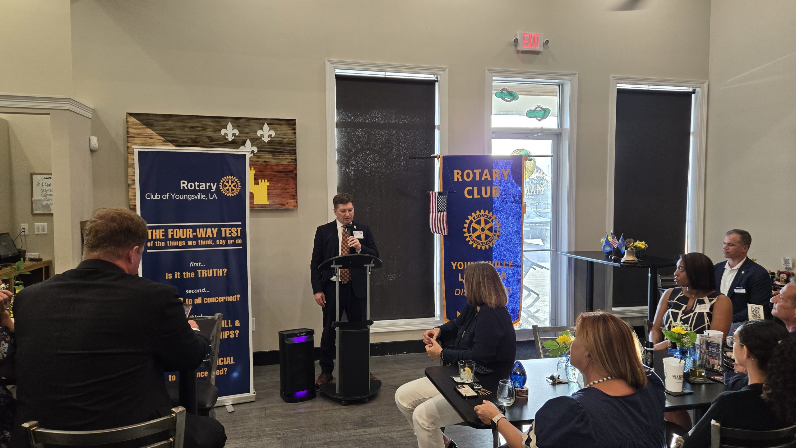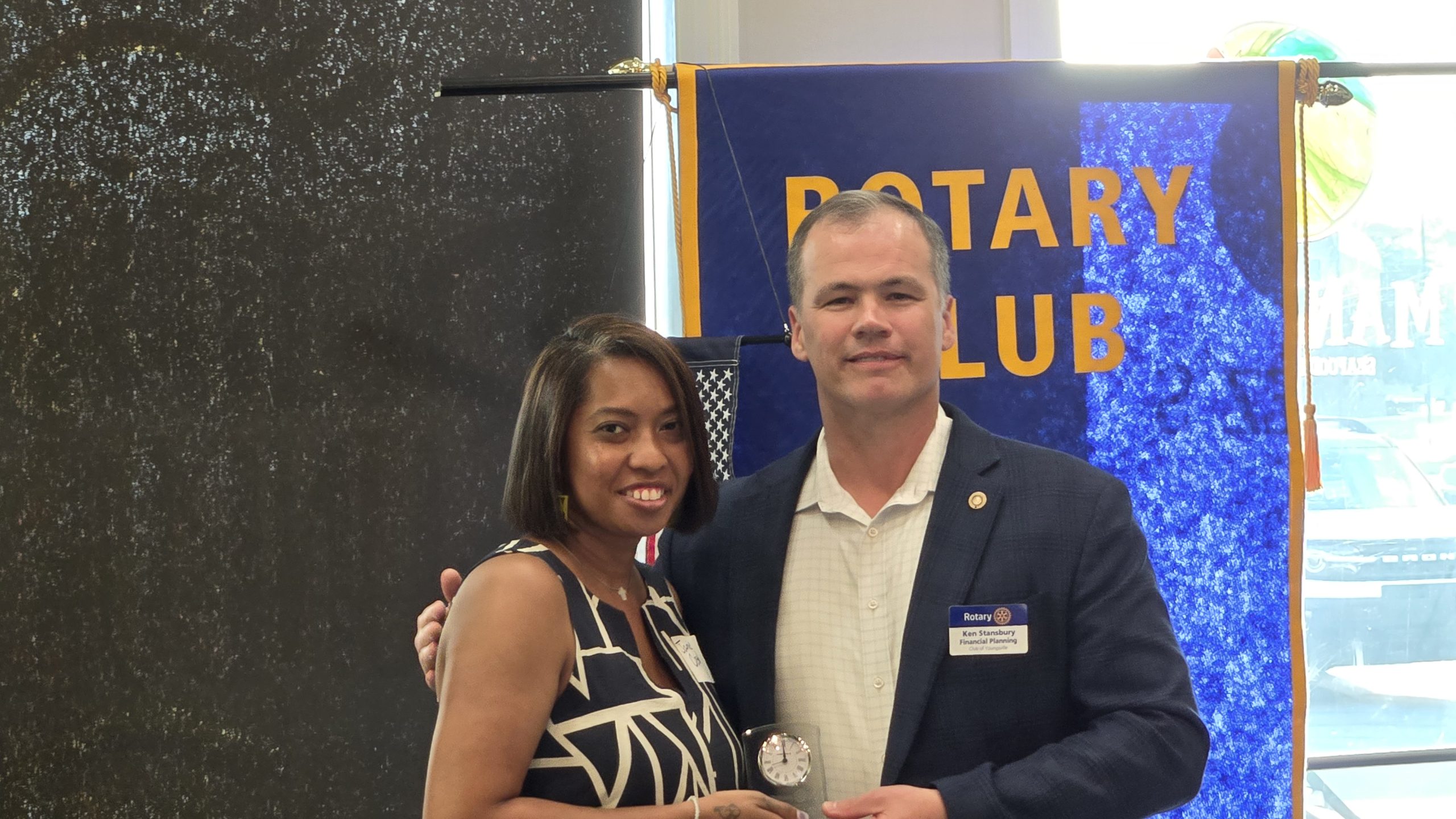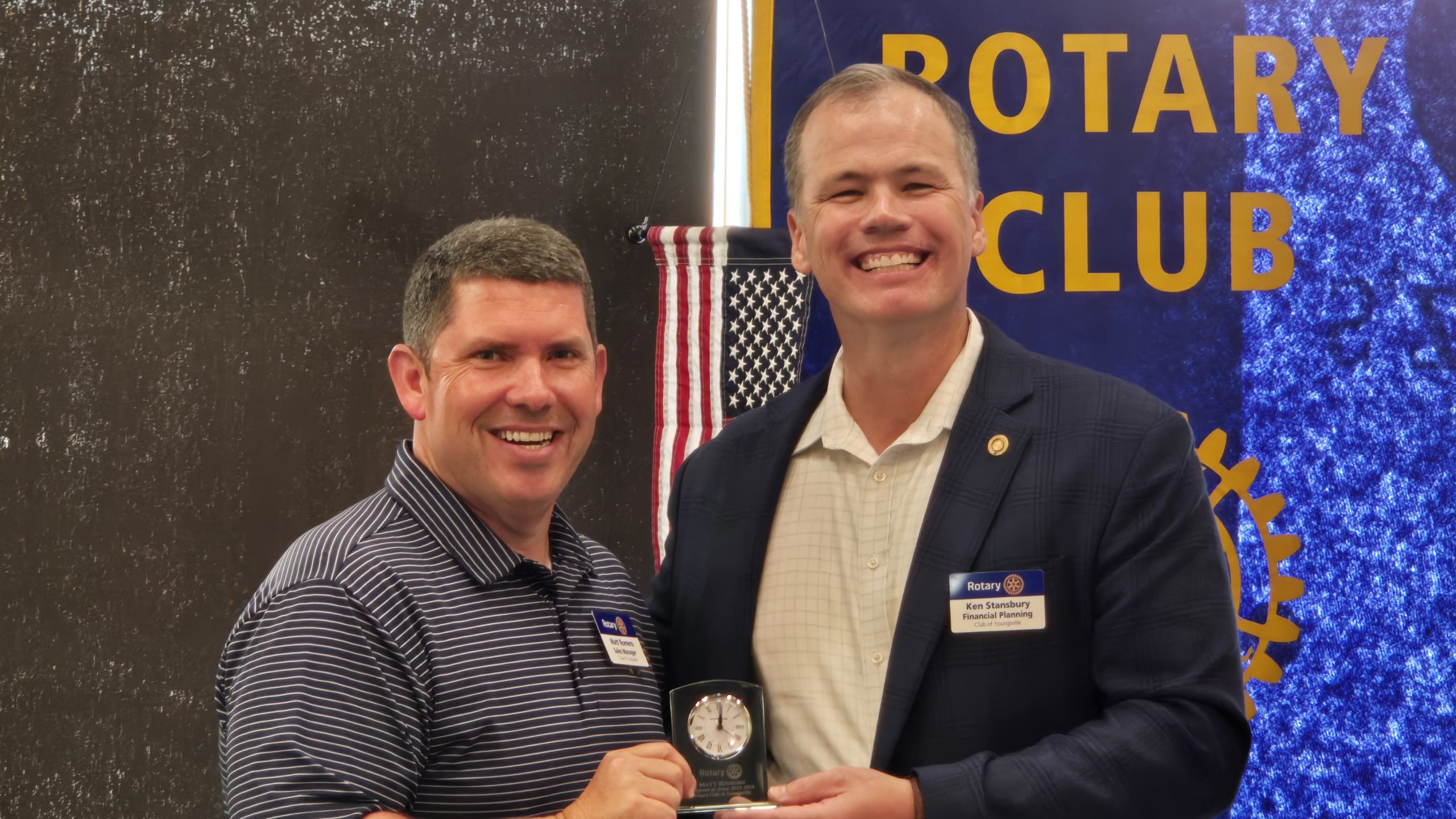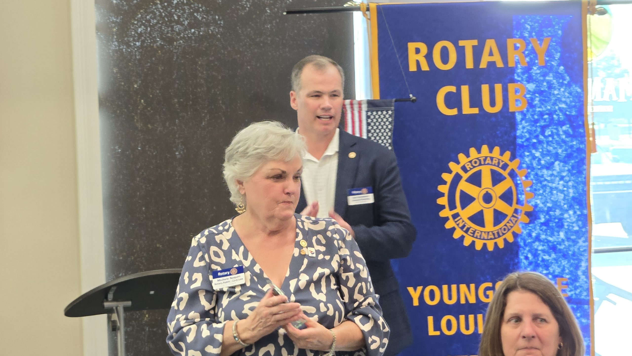 New officers were inducted at the Rotary Club of Youngsville banquet. Jamie Creed was inducted as the new club president for 2024/2025 by Vic Raxsdale, Assistant Rotary Governor of District 6300. Creed takes over from the outgoing president, Ken Stansbury.