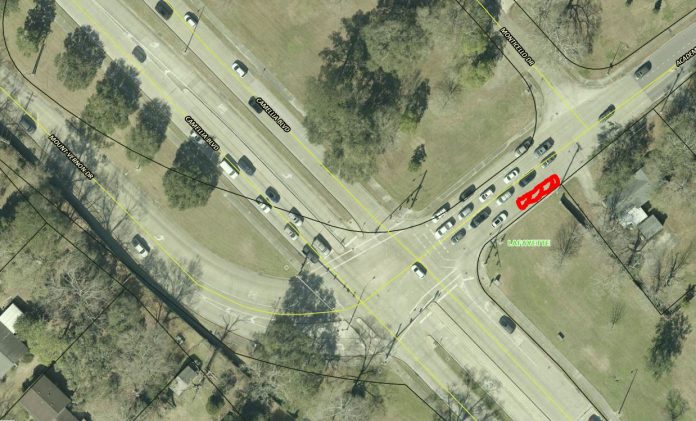 • Motorists traveling northwest bound on Camellia Boulevard (heading toward Johnston Street) will not be permitted to turn right onto Academy Road. Instead, they must detour via Eastland Drive and then onto Rena Drive.