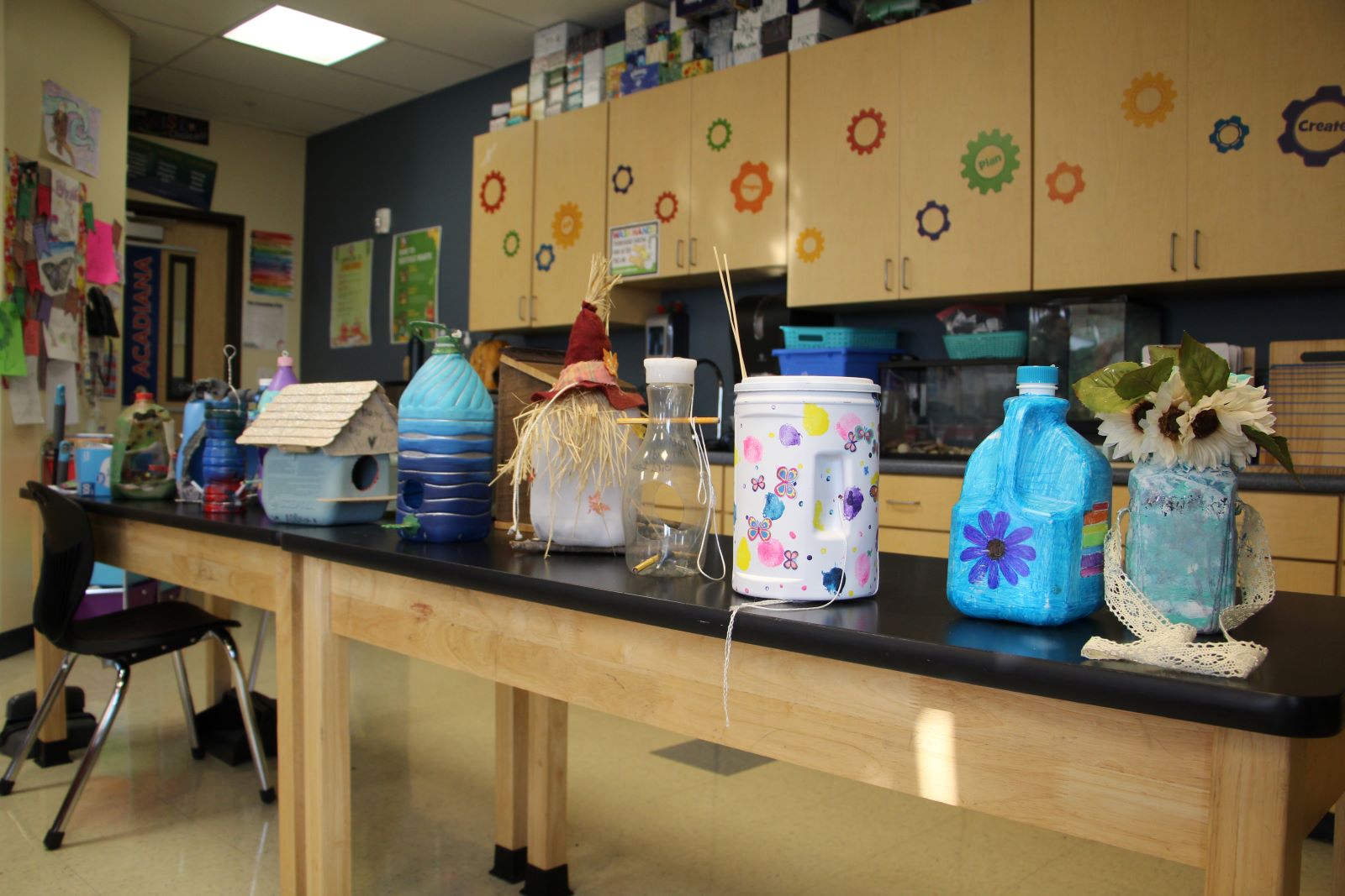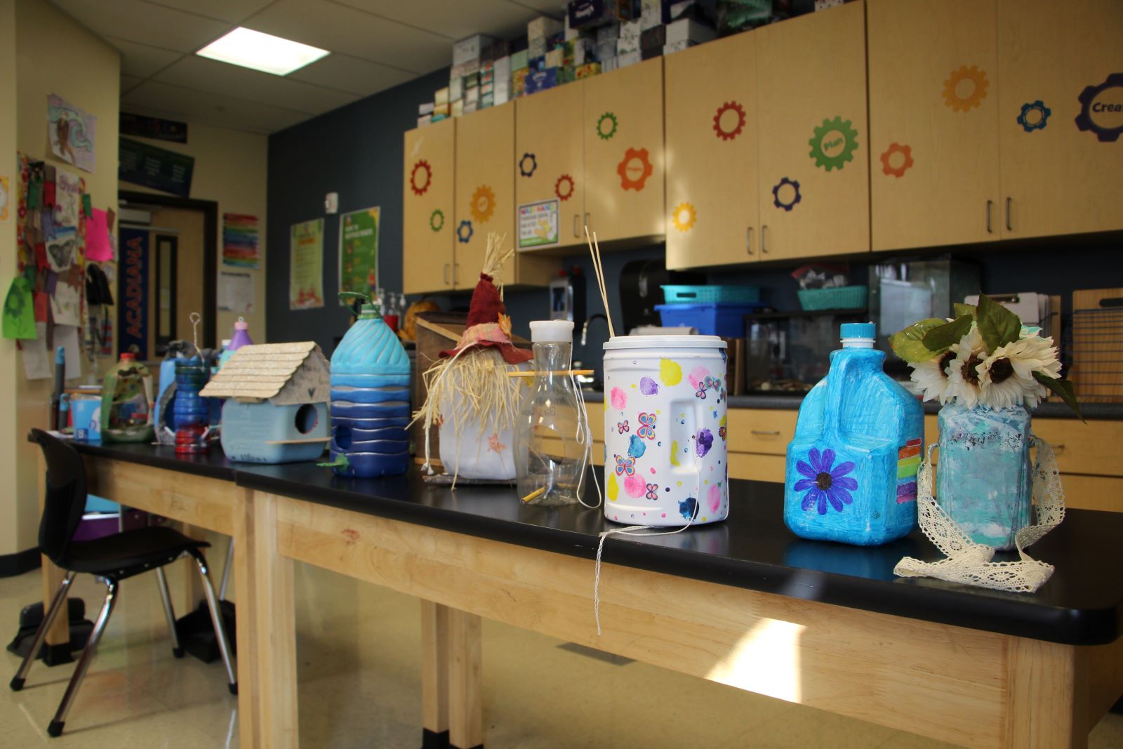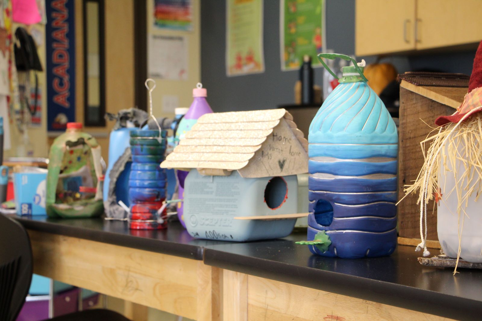 The students crafted over 300 birdhouses and feeders using recycled materials. The third-grade students built birdhouses, while the fourth-grade students created bird feeders.