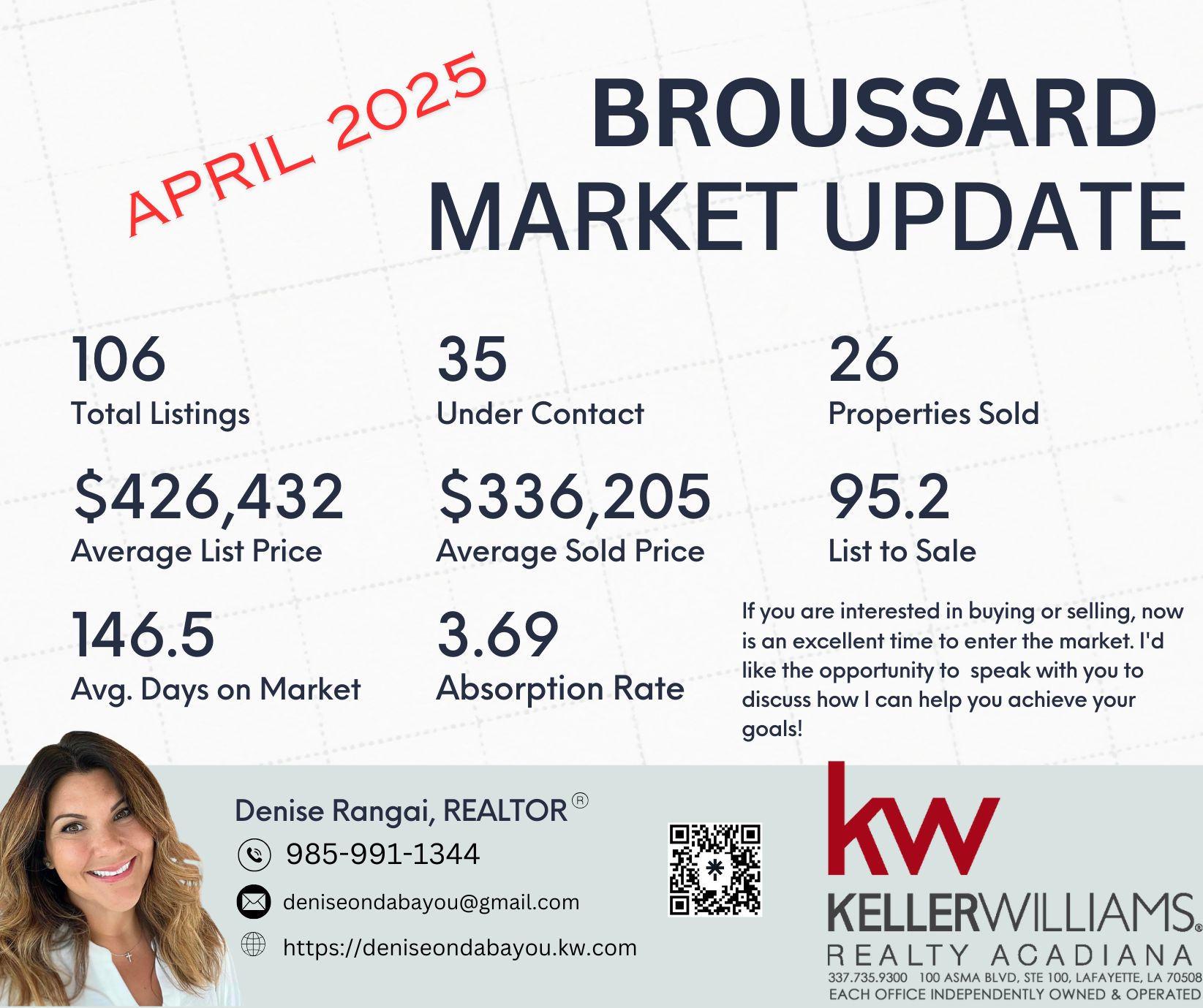 For further inquiries and market guidance, buyers and sellers can reach out to me, Denise Rangai, at (985) 991-1344 or deniseondabayou@gmail.com or visit https://deniseondabayou.kw.com