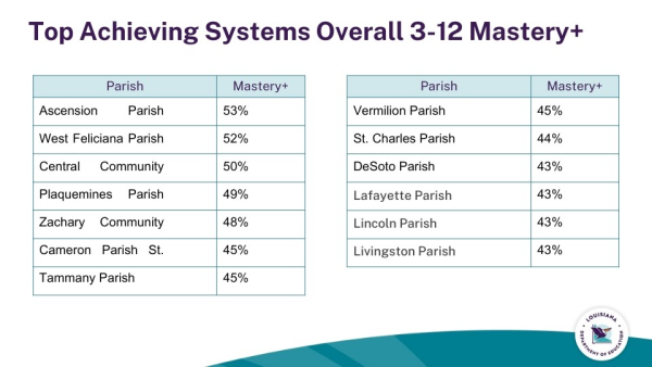 According to the report from the Louisiana Department of Education, 43 percent of LPSS students scored Mastery or above on the 2025 LEAP assessments, 8 percentage points higher than the state average of 35 percent. LPSS also ranked third for overall performance among the 10 largest school districts in the state.