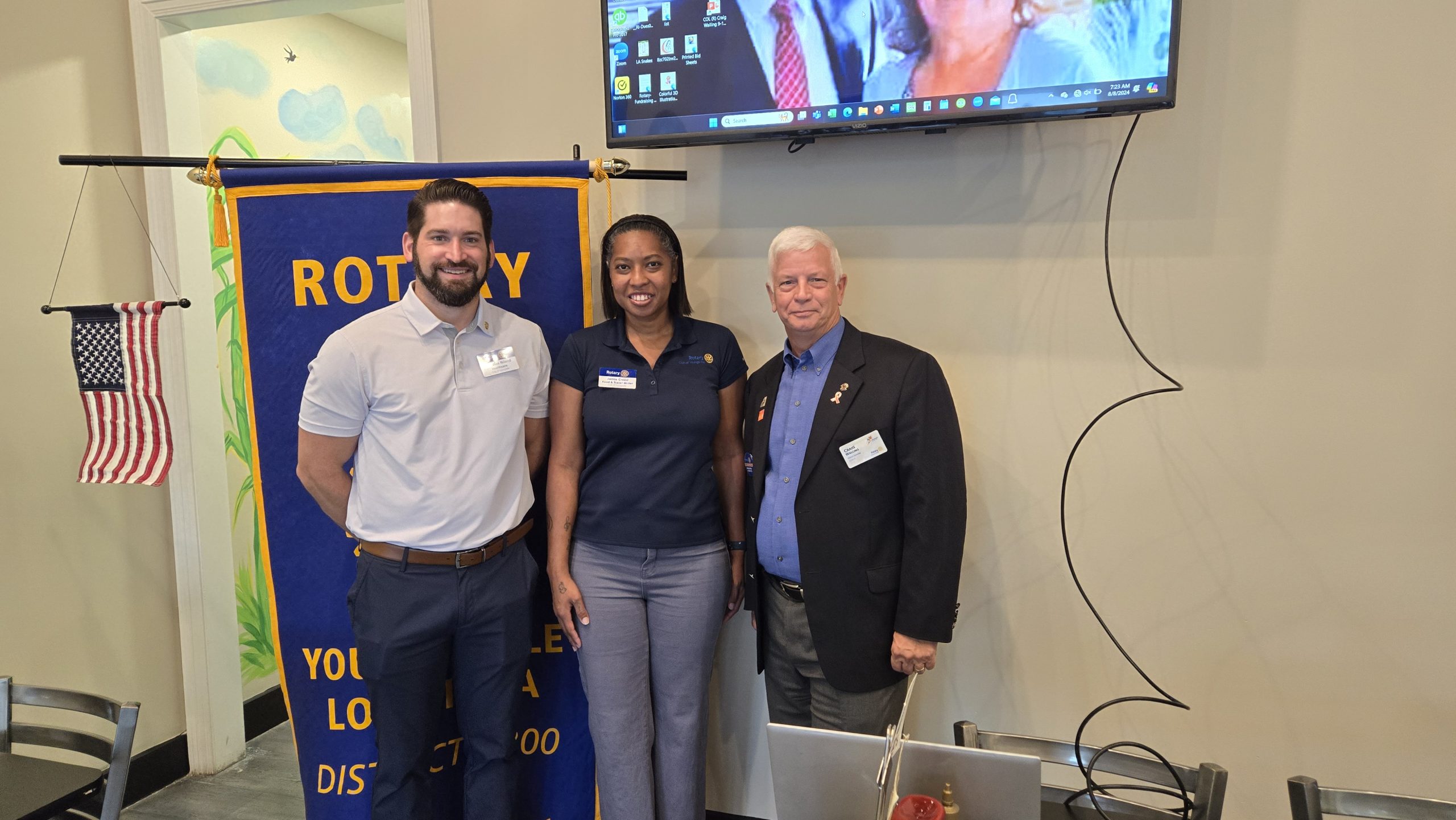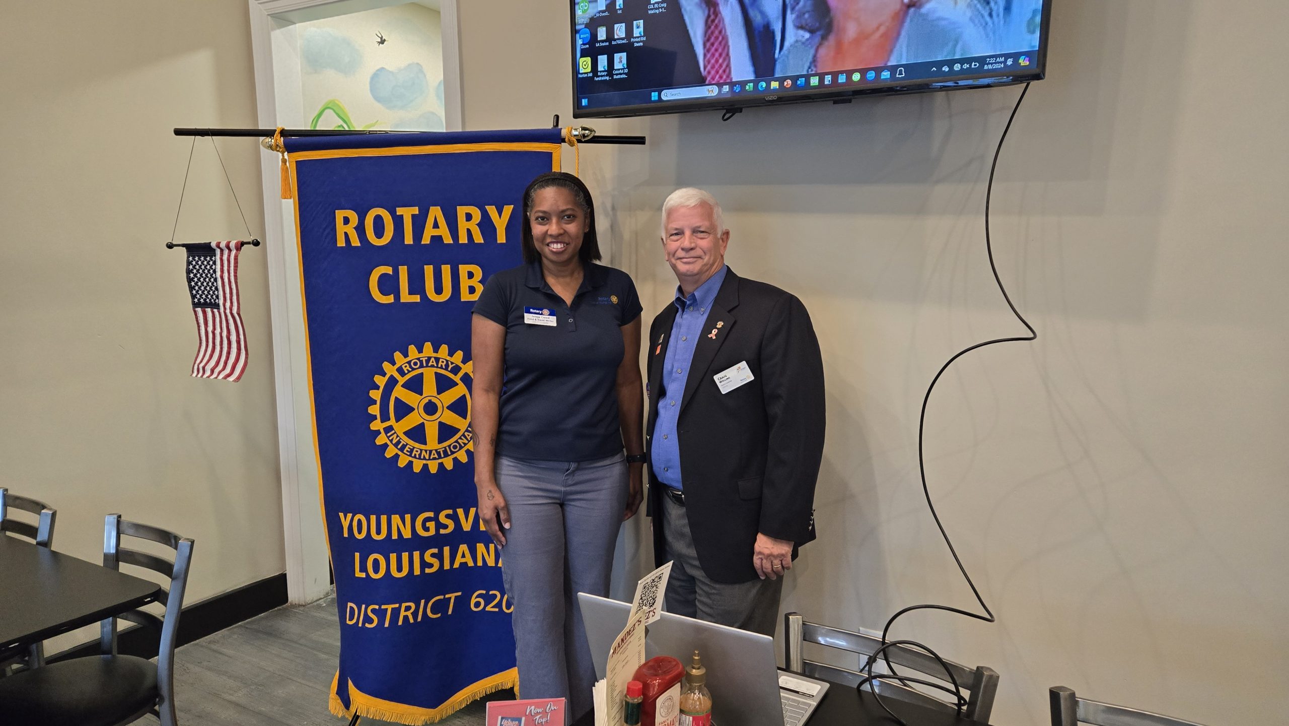 This morning, the District Governor of the Rotary, Craig Walling, and his wife, First Lady Clara, were the guest speakers at the Rotary Club of Youngsville’s meeting at Mendez’s Seafood Bar and Grill in Youngsville, Louisiana.