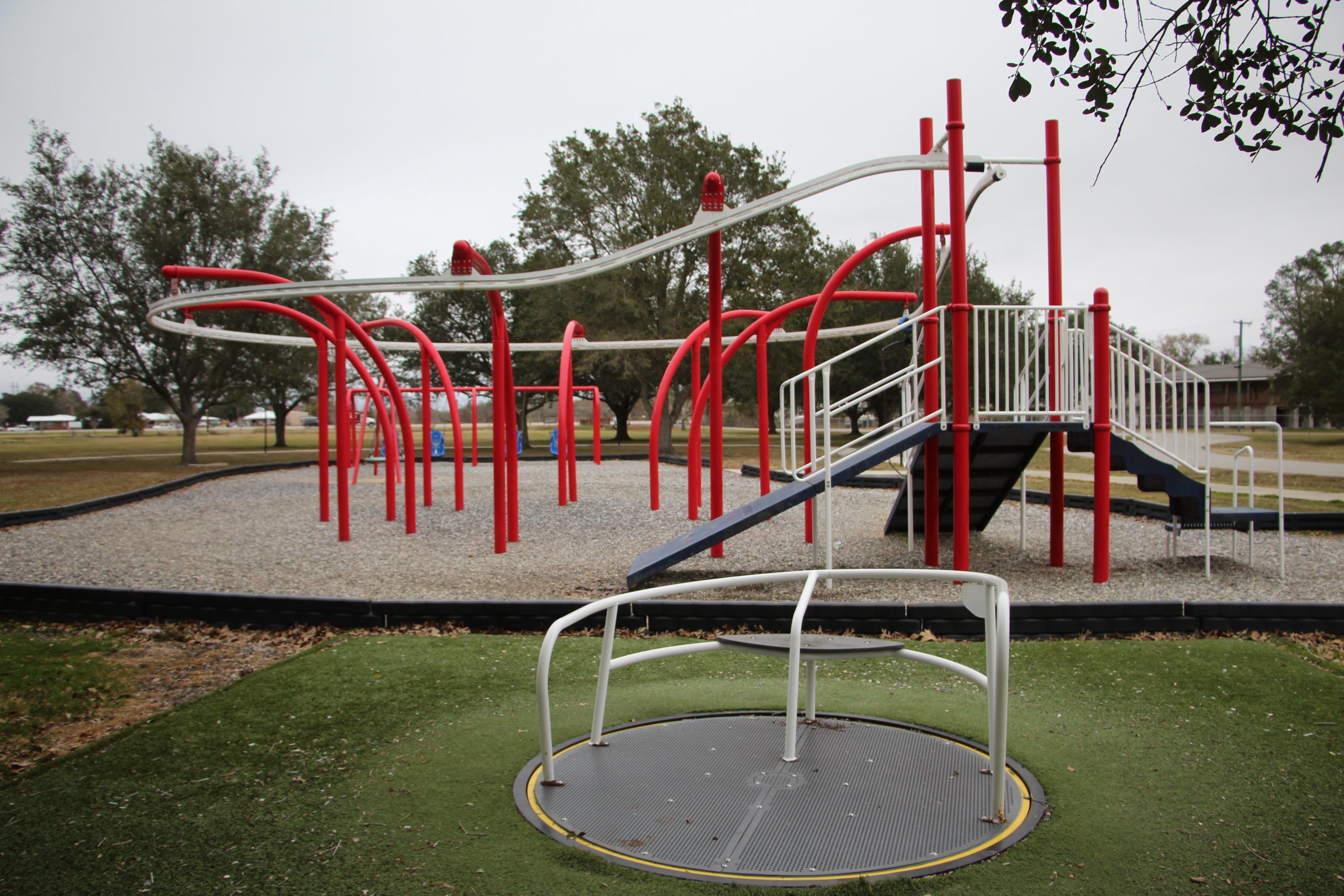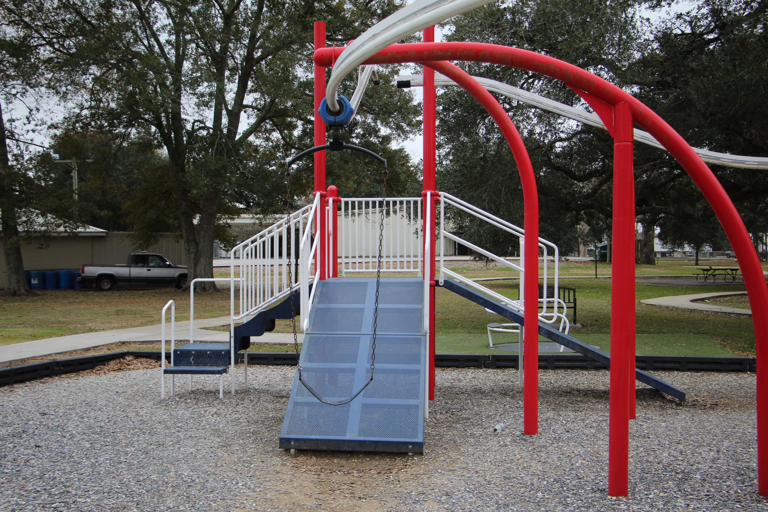 Erath resident Martial Broussard, a Twin Parish Port Board member, presented his idea for an inclusive playground accessible to Menacci and special education teachers at Erath High School. Broussard went on to spearhead the project; he and the town collaborated with special education teachers in choosing the design, layout, and playground equipment based on wheelchair accessibility, the needs of the children, etc.