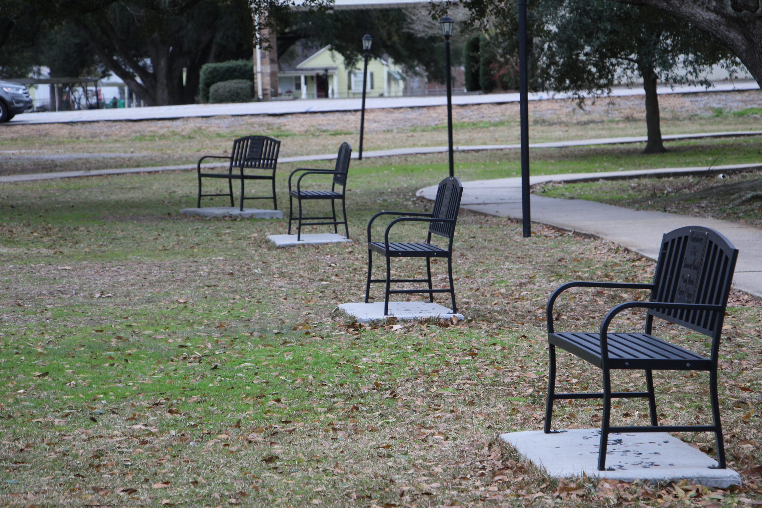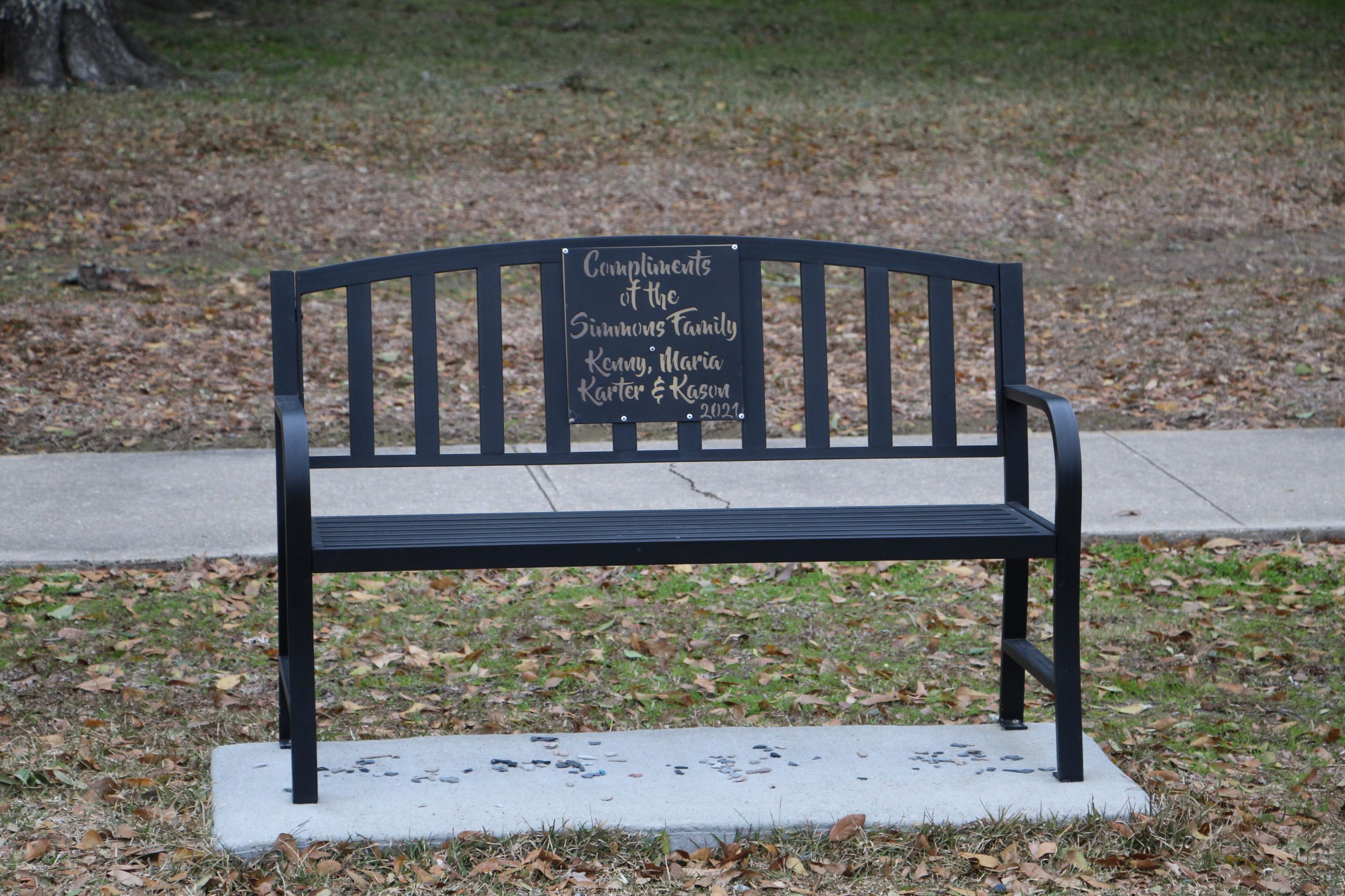 Surrounding the inclusive playground are metal benches donated by businesses and residents of Erath through a community fundraiser. The name of the bench’s donor is on the seat back.