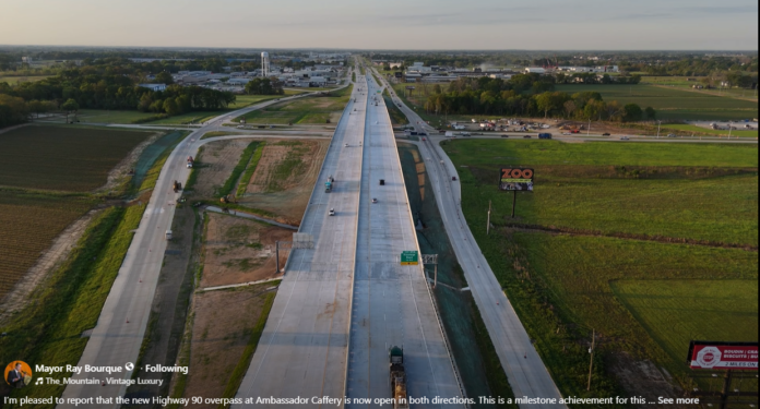 Broussard, LA (March 26, 2026) – The new Highway 90 overpass at Ambassador Caffery Parkway in Broussard is now open to traffic in both directions, marking a significant milestone in the ongoing infrastructure project, according to Broussard Mayor Ray Bourque.